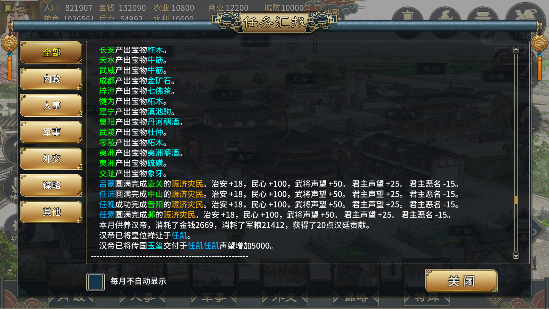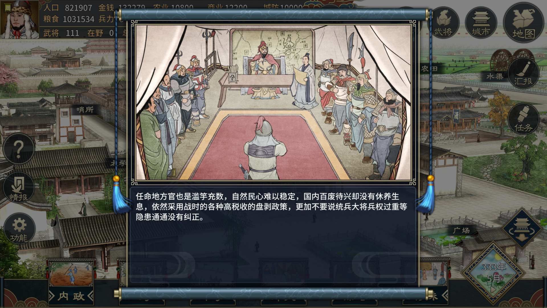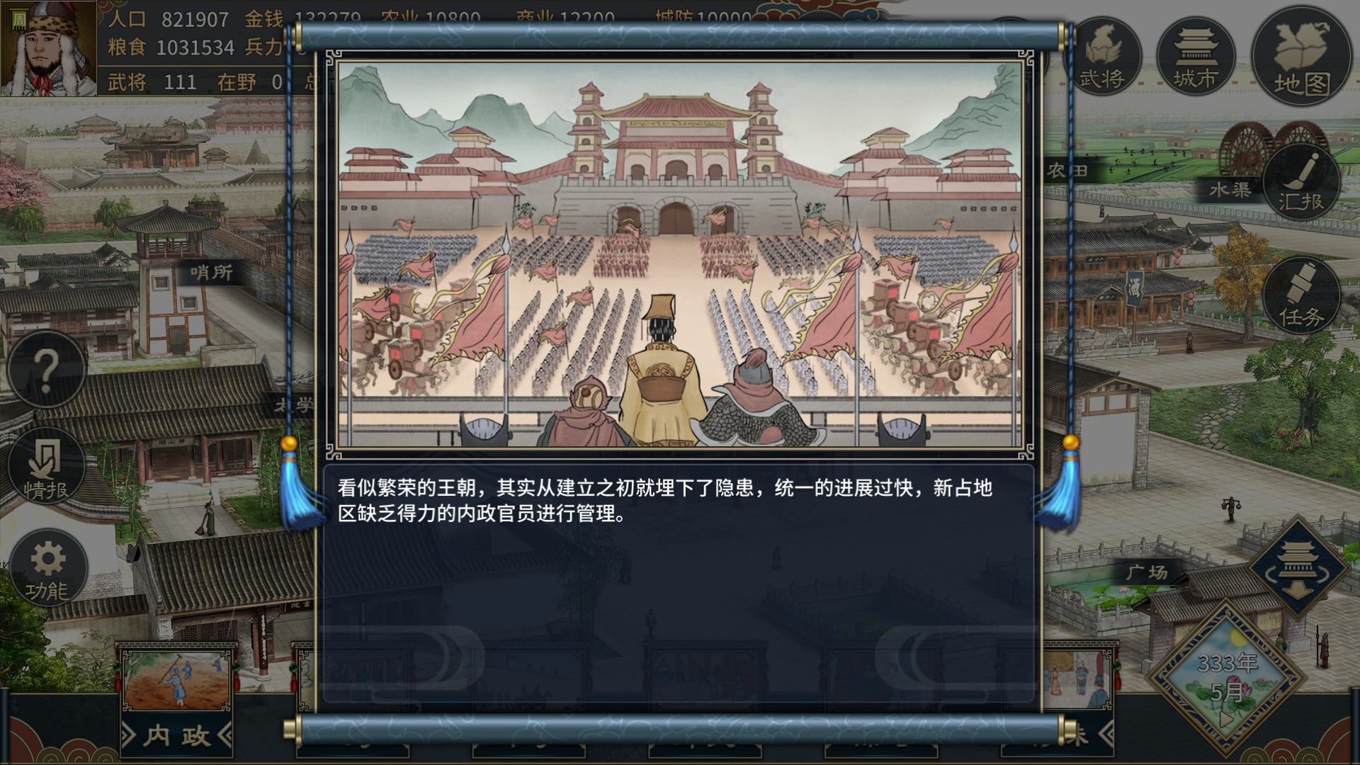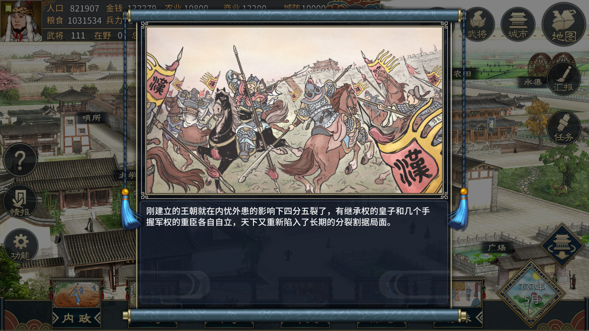 玩了两次统一,第一次我的军师告诉我自立为王,我统一了,结果直接恶名一万,第二次再有人让我自立我就不同意,终于熬到了献帝让位,也不要供养了,顺应民意,一统天下,可惜儿子们四分五裂了,也是遗憾