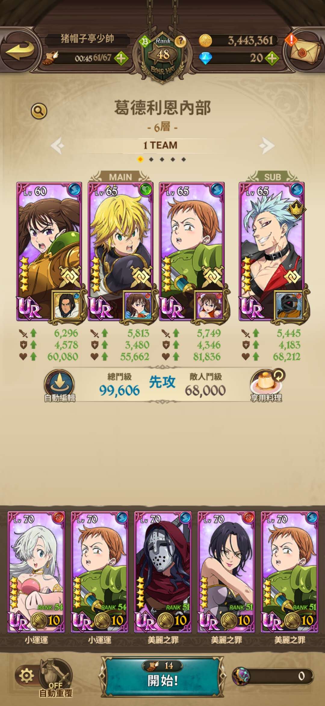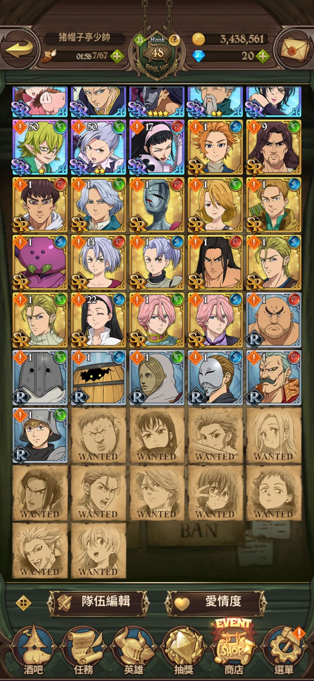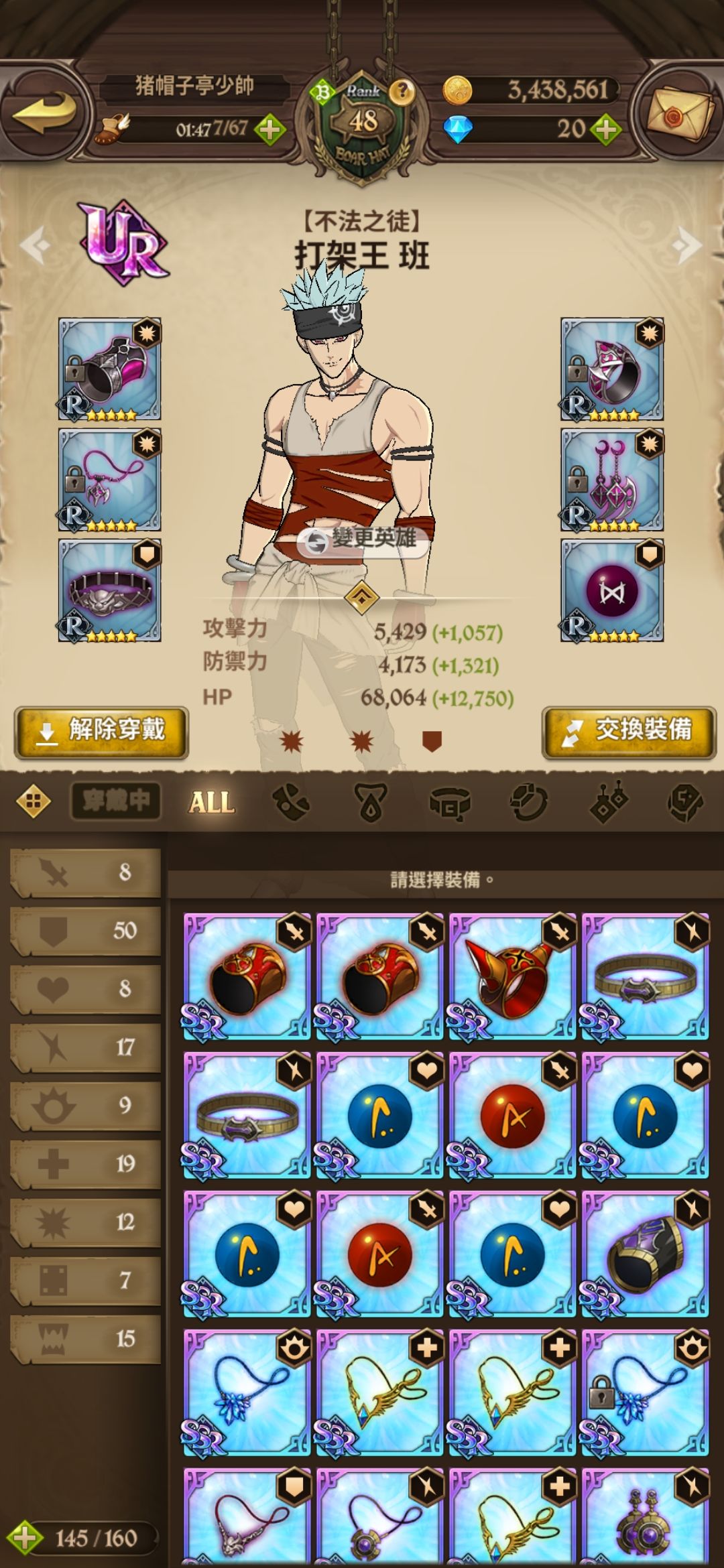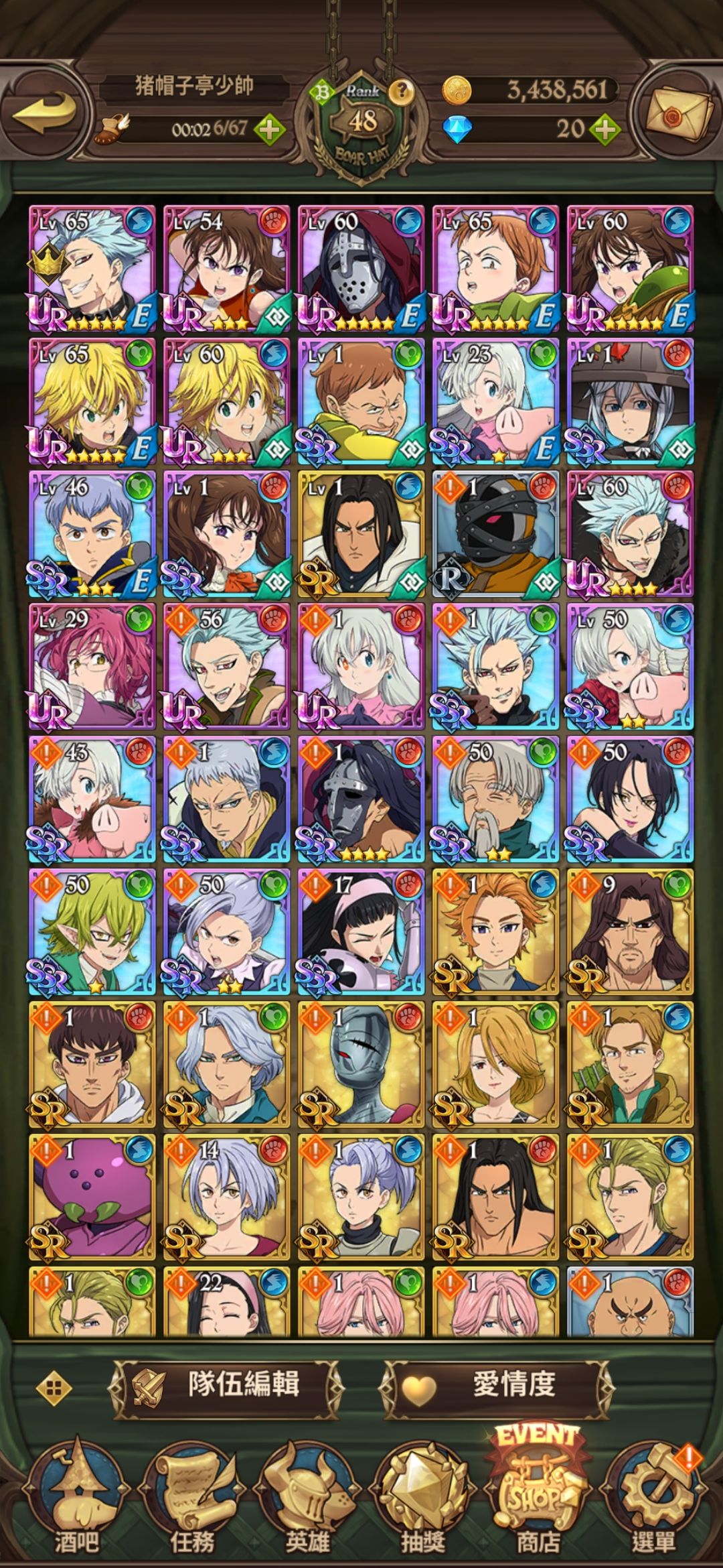 3.有了金币优先升级主力角色的装备(本人觉得是水金),前期是全R装备(5星),SSR可以一边强化。