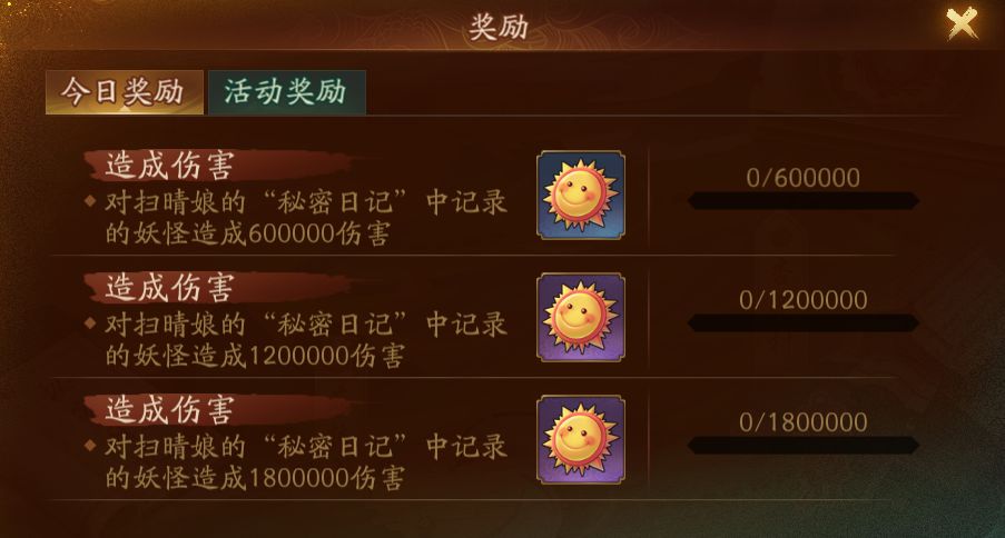 根据大人每天成功挑战“秘密日记”的boss的次数,还可以额外获得蚁鼻钱、玉璧、唤灵符等奖励。成功挑战意味着,打败BOSS或坚持到限定时间没有阵亡。
