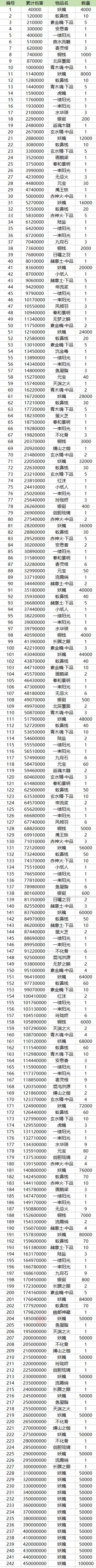 累计伤害奖励列表
