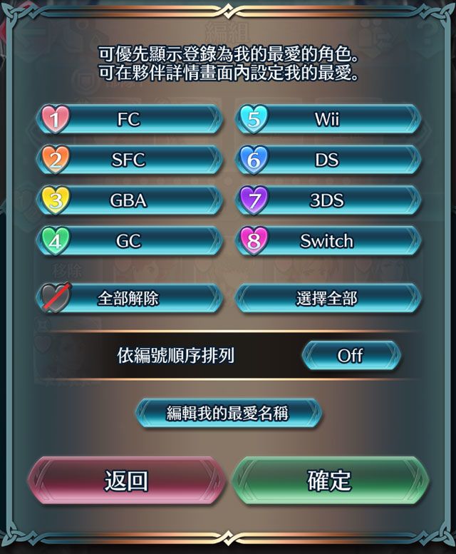 关于可将英雄设定为8种不同「我的最爱」,追加了可为每一个我的最爱命名功能。