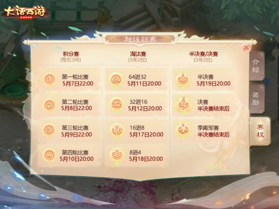 报名结束后,积分赛将于5月7日-5月10日期间开启,积分赛共计12场的激烈比拼。需要提醒大家的是,在超级联赛积分赛阶段,前三轮将于22点开打,最后一轮积分赛在20点准时开打,不要错过比赛时间哦!