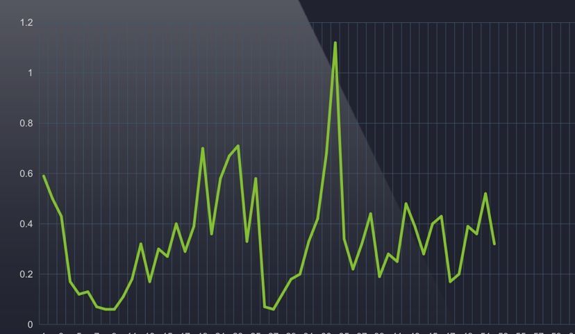 这种趋势就比较危险,因为它的涨幅并不会很大,像图中的就一直在0.2-0.5区间来回震荡
