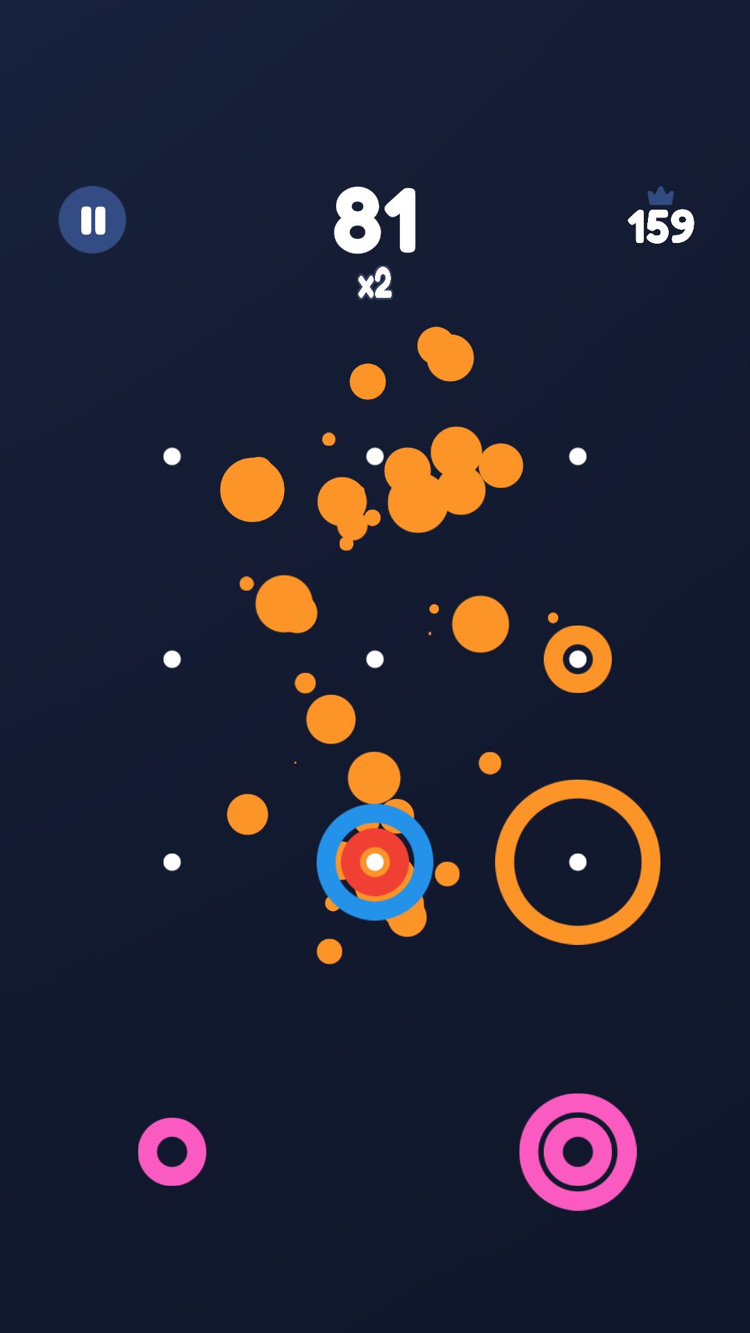 而游戏最有特色的地方就是可以堆叠,我们消除的圆圈,有大中小之分,每一种都可以作为一种颜色消除,同一种颜色的大中小圈放一起,还会直接消除,玩法上还是比较创新的,到了游戏中期,由于颜色的多样,我们就必须要使用堆叠术,此时对于眼力绝对是一种考验。