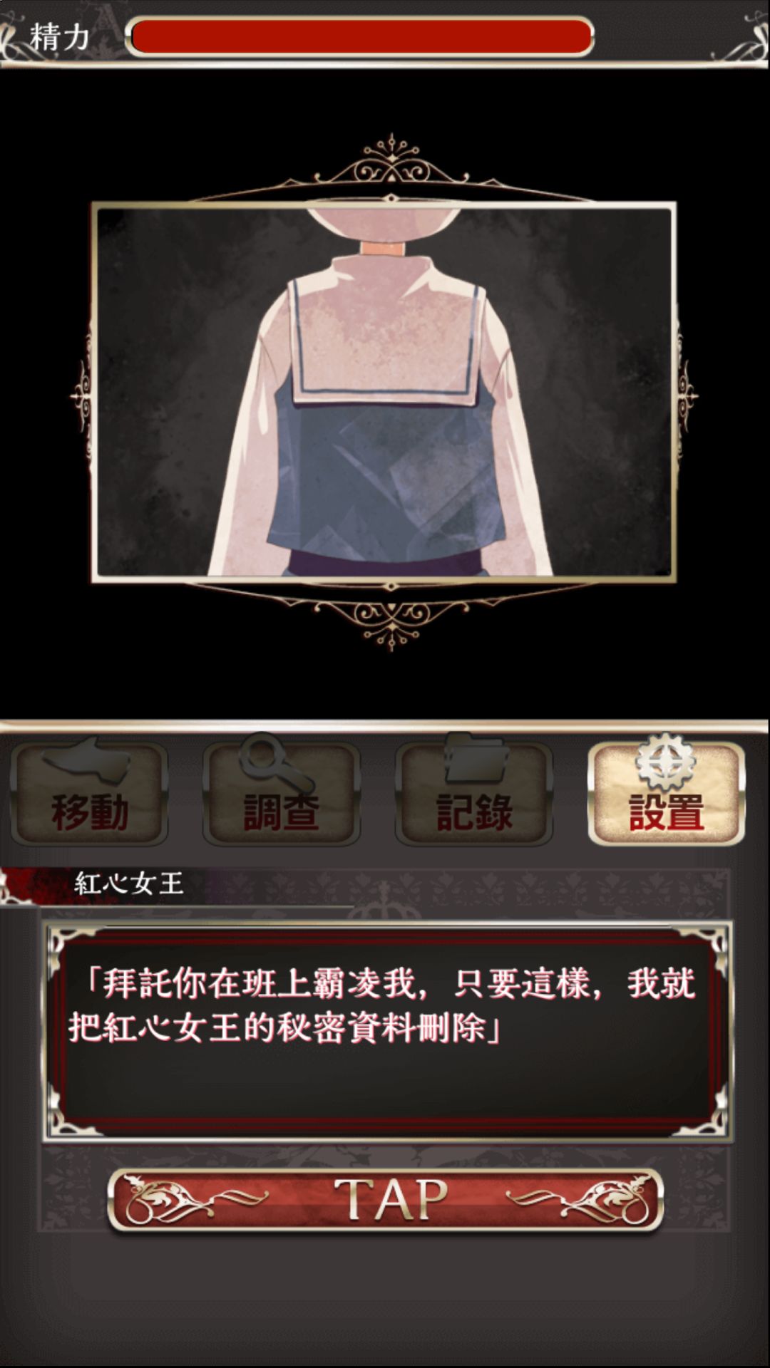 游戏采用体力限制,选项答错扣体力,跑地图扣体力,有的时候找不到人跑图就跑死了GG了……但这并不能阻止我们对这游戏的探索,因为推理游戏就是要玩到结局嘛,这过程的心酸只有自己懂啦,在没攻略的情况下玩一天都有可能,我在看攻略的情况下前后都玩了好半天,而且我还是一直疯狂点屏幕的(读的快没办法,嘚瑟脸)。