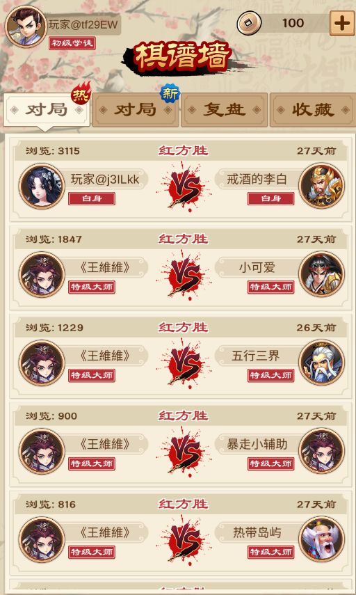 点开界面可以看到对局棋谱分为最热和最新两块,顾名思义,最热就是当前游戏内最热门的棋谱,最新就是当前游戏内最新的棋谱,我们可以根据自己的喜好选择,