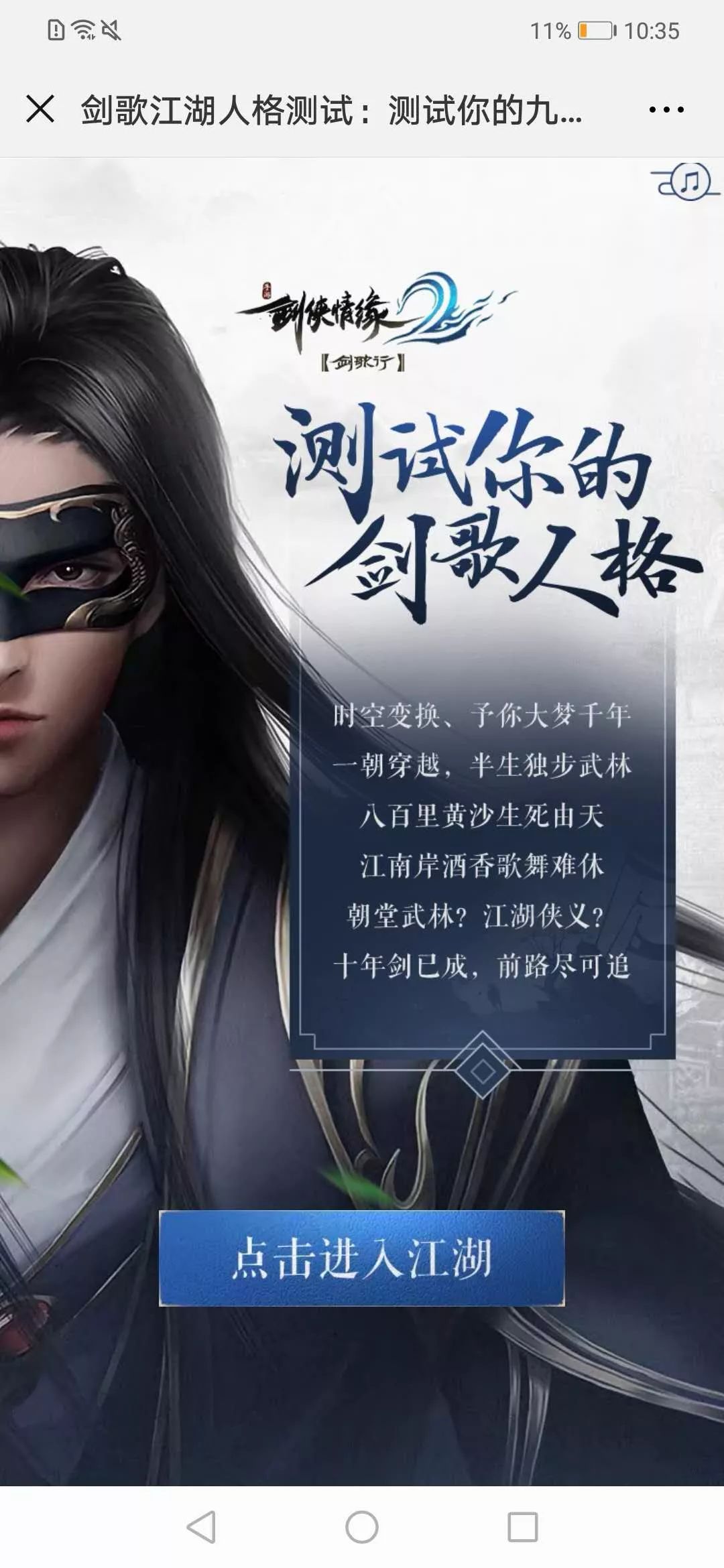 剑歌江湖人格测试开启,你在江湖中的形象是谁?