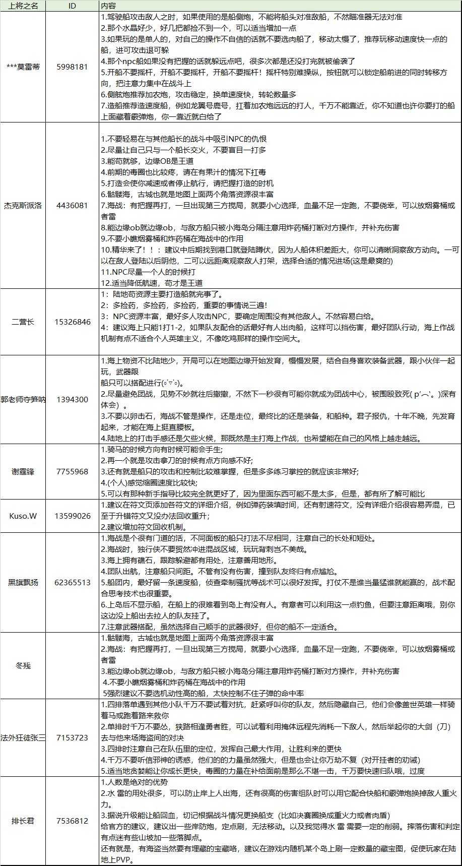 感谢上将们在本次测试中给出来的建议和攻略建议!!小编整理了一些法典的内容,供未来新上任的上将进行查询,更好的在神秘海域生存下去!!