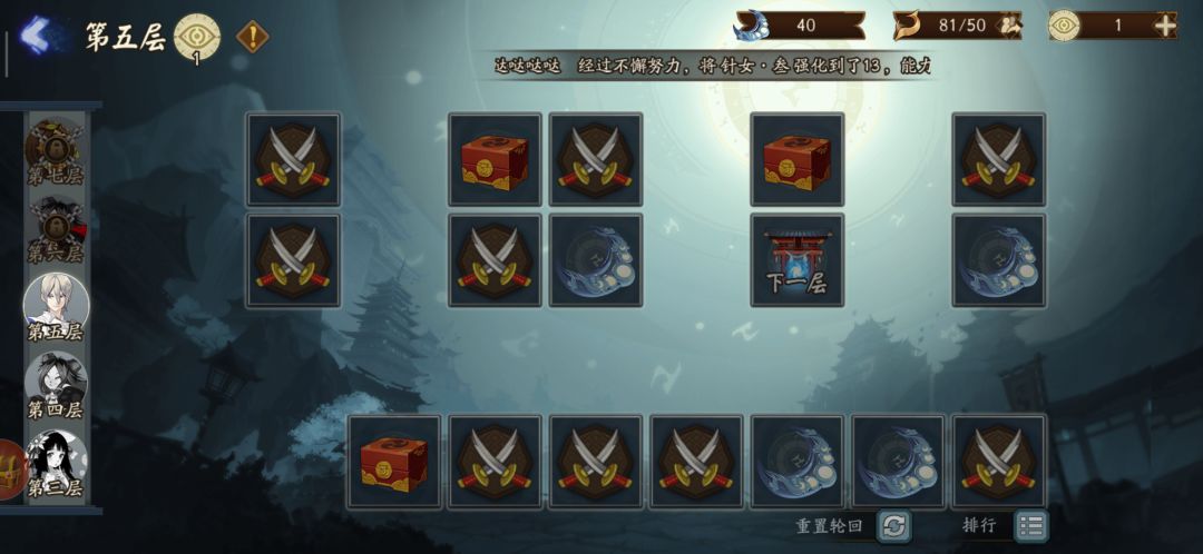 这次活动可谓是肝的不行啊!层数更是高的不行,我一路上都是选择御魂的,其他的我并不清楚有知道的请在平均留言。