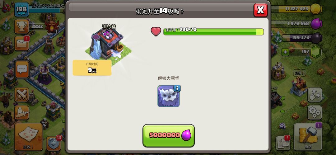 升完大本营后首当其冲的应该升实验室,紧接着存水罐,存钱罐,油罐。当然,很多小伙伴想升训练营,我这边建议不氪金的选择后面升,直接升的话影响刷资源速度,毕竟13本升级需要太多资源。