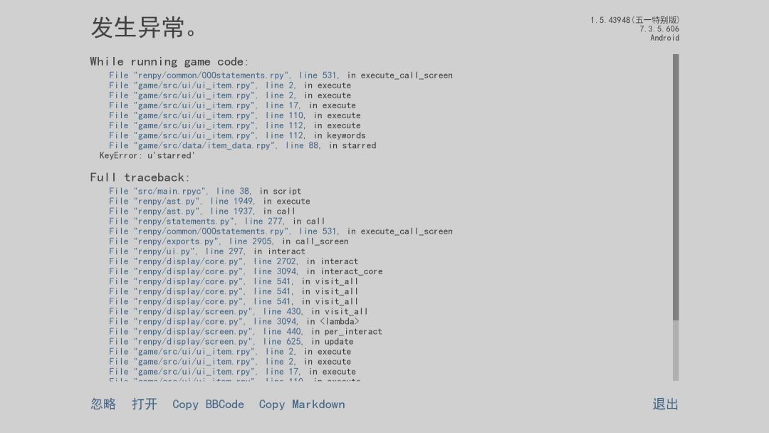每次一点背包中的物品就会出现错误