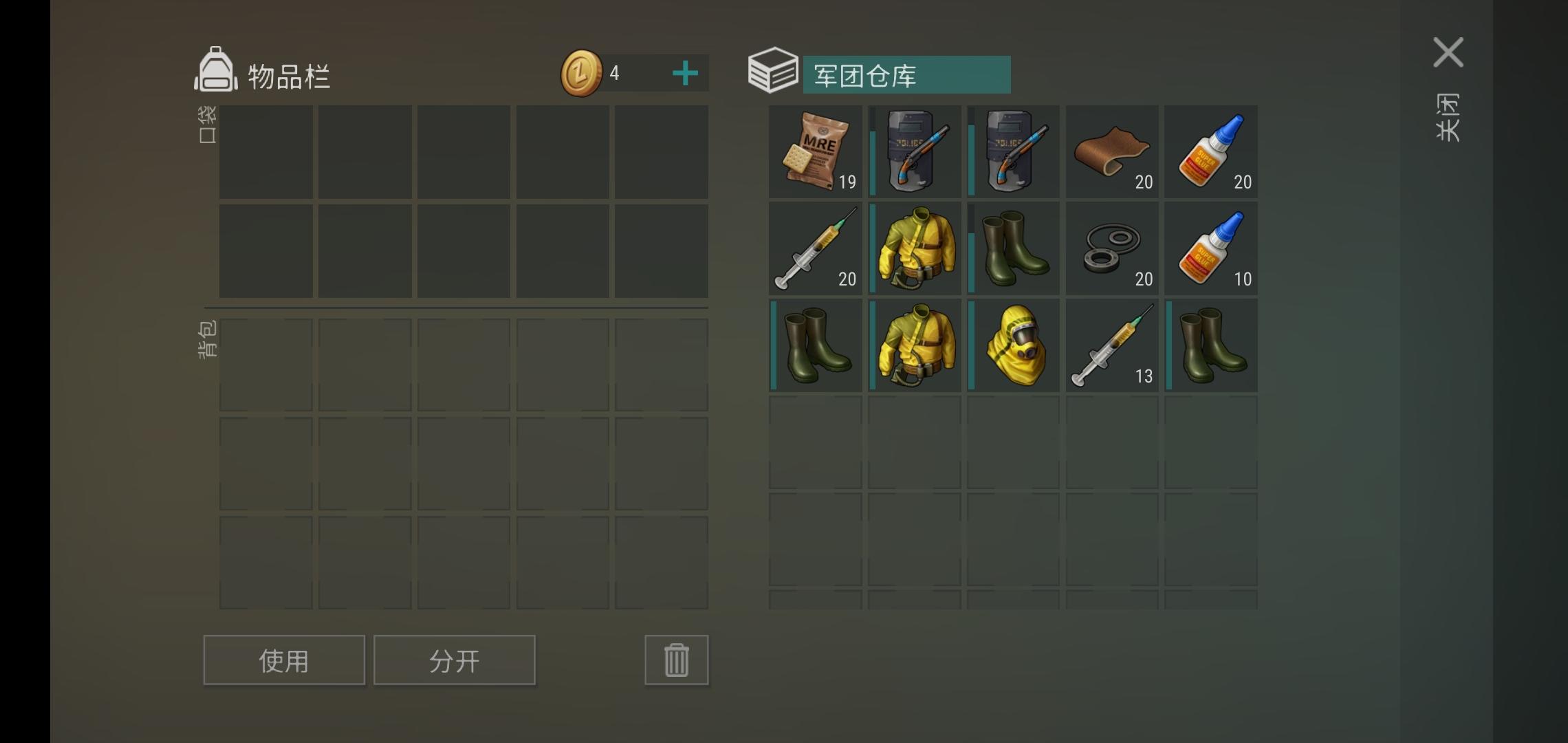 个罐头,我挂掉后,回去看东西都在里面,之前放在军团仓库记得东西在,我又看了下我自己的仓库,发现我放在军团仓库里的辐射服和鞋子我仓库里也有,但是2级套没了,