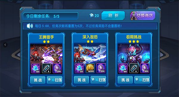 悬赏任务在这里的PVE中,很具有代表性。里面将PVE的玩法变得有趣化,比如Boss追杀大逃亡,突破重重障碍获得最后的胜利。而且悬赏任务里的每个人物星级不同,奖励也不同。