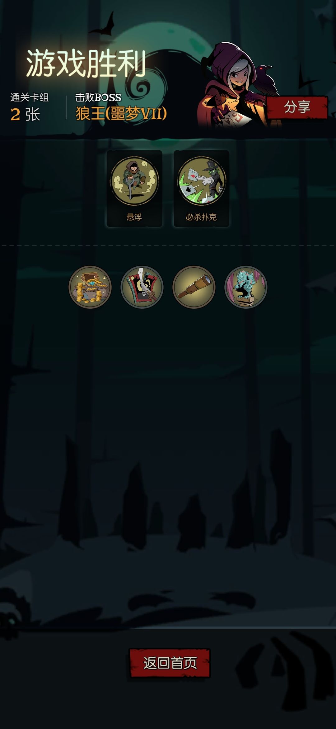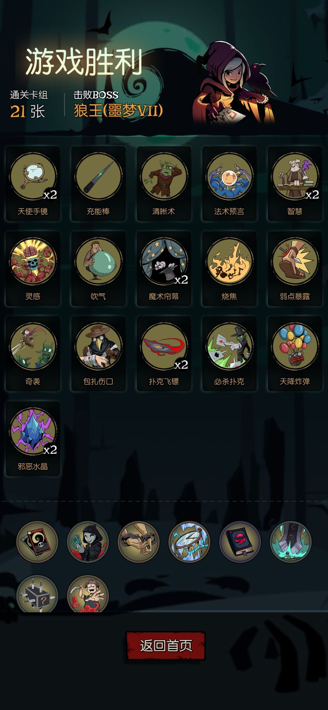 飞镖即使一回合扔200次,也只有400伤害,如果狼弟弟有一个麻木BUFF,那真的想哭。飞镖的卡牌伤害导致想一回合扔死外婆或者狼弟弟这种脸皮厚的怪,除了蓝量续航外,就要弄增伤手段来解决伤害的不足,这里推荐几张卡牌:力量祝福,烧焦,弱点暴露,勇敢的心,邪恶水晶,