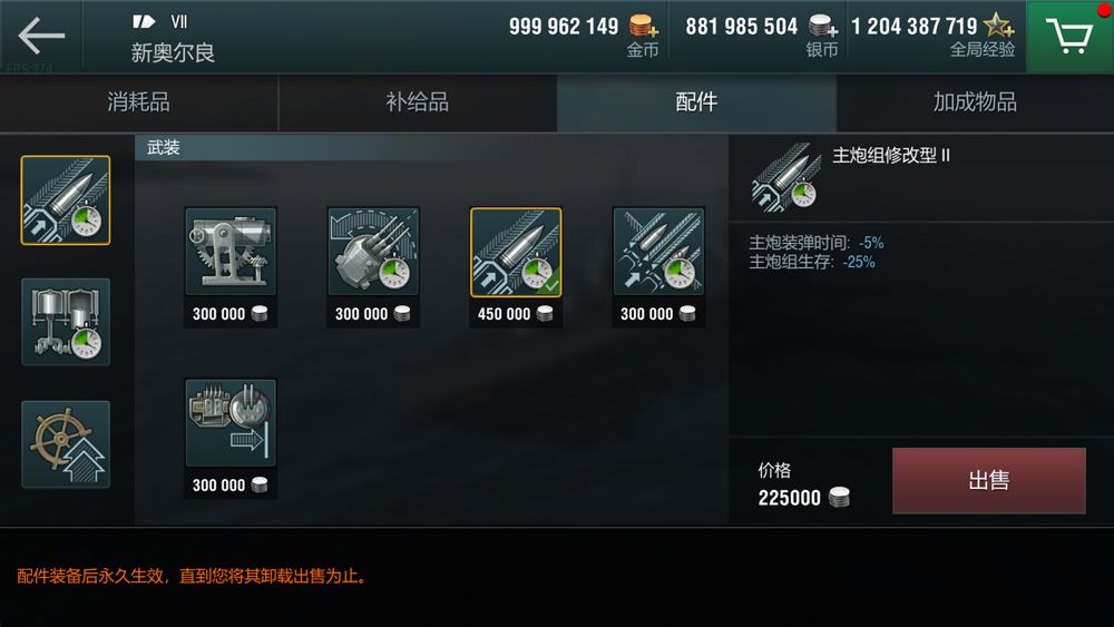 正所谓好马配好鞍,战舰配件的选择也非常重要,游戏中每艘战舰可以选择三个不同的配件,可以根据需要进行搭配,例如战列舰装填时间较长,可以选择主炮组修改减少装填时间,驱逐舰隐蔽要求较高,可以选择隐蔽系统修改。