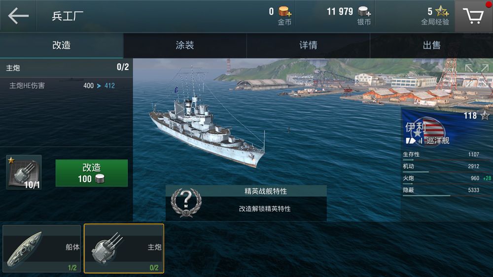 科技是战斗力保证之根本,通过兵工厂对战舰进行改造,可以提升战舰的各项属性,例如改造船体可以提升血量,改造主炮将提升舰船伤害等等。