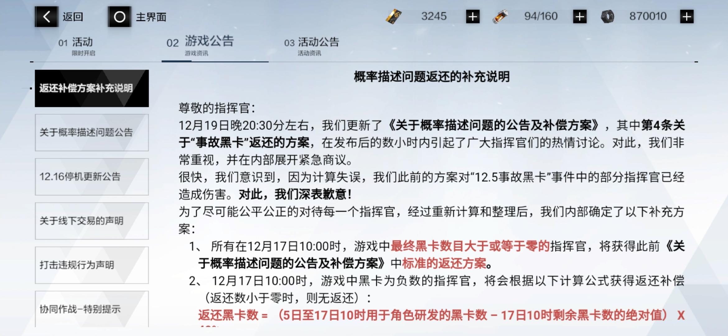 我不是黑卡户,站在中间立场上说话。他们凭什么被喷?这群网络杀手脑子都是屎吗?说回来还不是吃不到葡萄就说葡萄酸? 就喷子这行为,这格局,这眼界,呵呵了,现实里也好不到哪去!一个黑卡户的事都要过去了,因为官方出公告,补偿抽卡概率问题。又被揭开伤疤撒盐,疼不疼?如果有黑卡户看到 希望你能坚持下去,那些伤害你们的话会成为你们成长的养料!