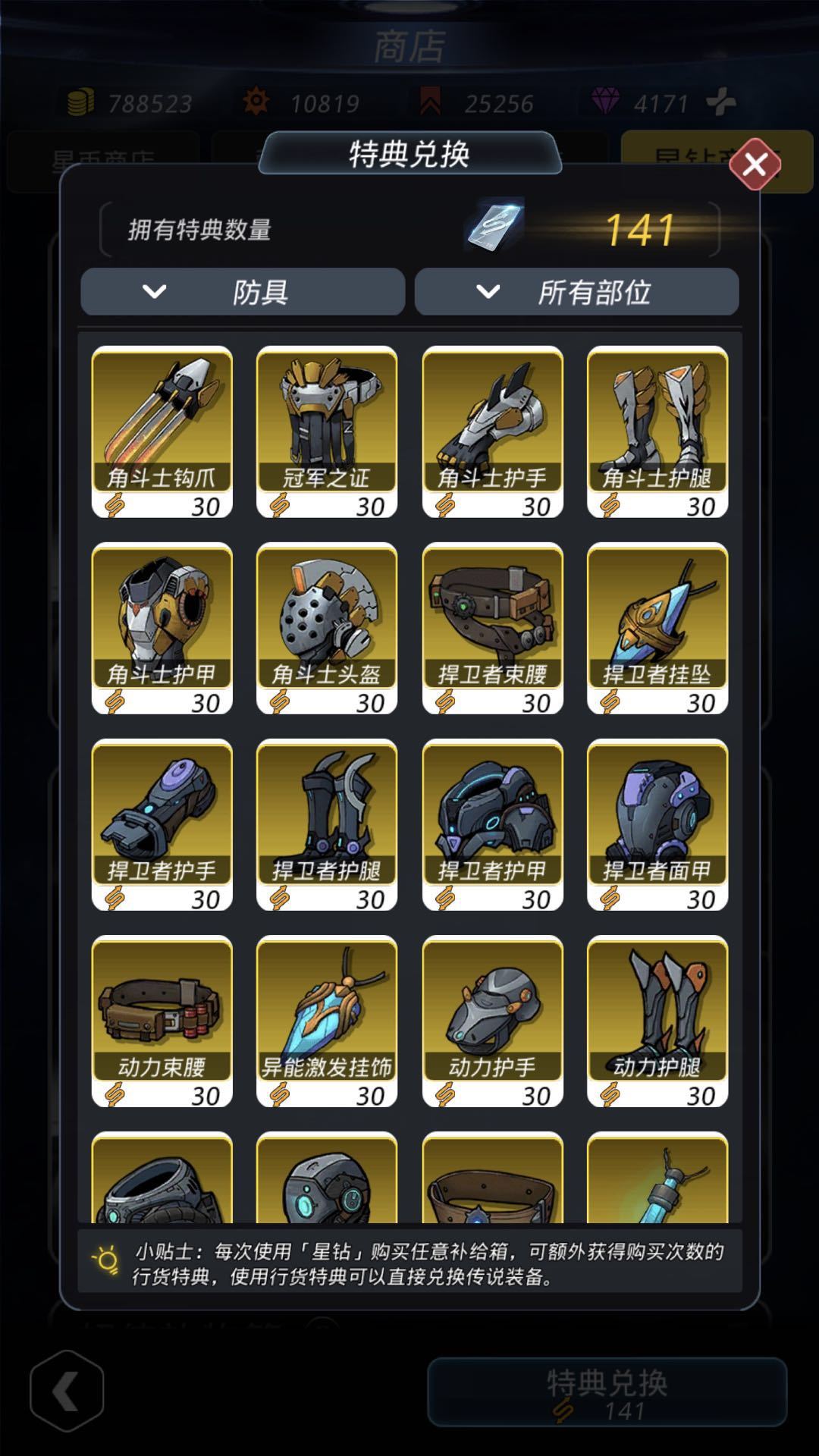 当特典累积到一定数额后就可以兑换想要的装备,而且全都是闪闪亮的金装喔~