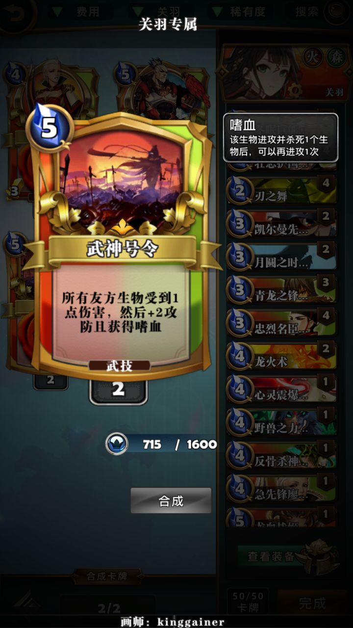 核心卡:护国军,丞相,刃之舞和武神觉醒如图:
