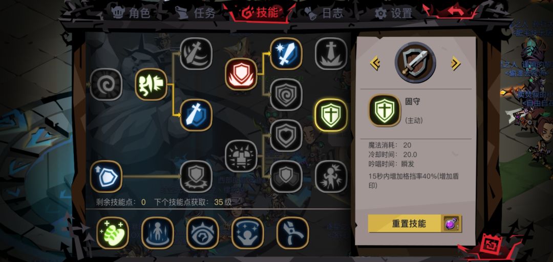 剑盾的重要技能,增加格挡率,简单粗暴,由于格挡之后才能使用盾击,因此也是剑盾必点的技能。