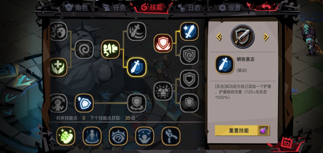 剑盾最最最重要的核心技能,可以说直到点了反击和钢铁意志剑盾才能称得上是剑盾,没有这两个技能的剑盾莫得灵魂。因此将这两个技能放在一起详细分析。