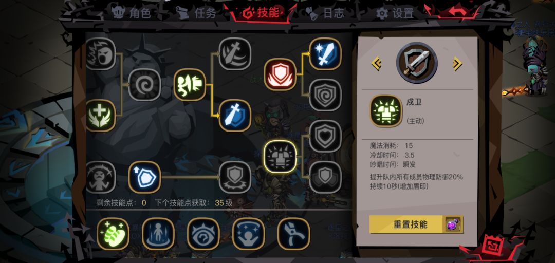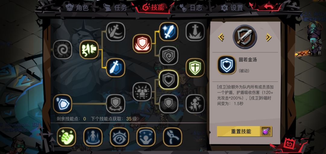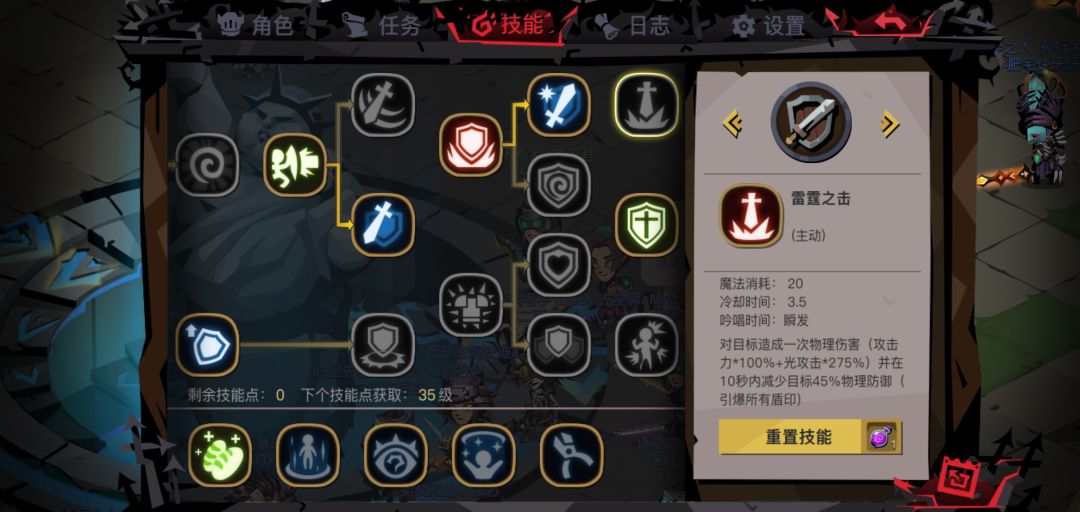 26级之后就能点满剑盾的一系列技能了,之后再升级依然会获得技能点。一般情况下剑盾在32级以前就能击败盖亚了(后面有具体攻略),因此就再推荐两个其它技能。