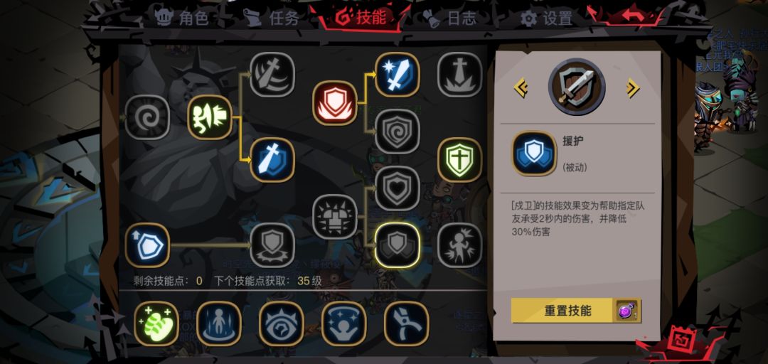 目前也是一个比较鸡肋的技能,只能替单人扛两秒,期间降低百分30伤害。没啥用,要想帮队友不如给人奶一口,不建议点。(官方考虑一下弄成群嘲呗~还能顺便解决组队反击难的问题)