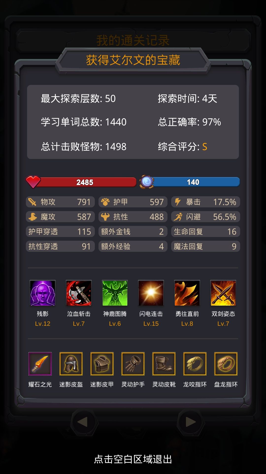 神鹿图腾:前中期核心续航技能,闪避也能触发,也可以用汲血代替,但汲血要悄悄多点,这个有就行
