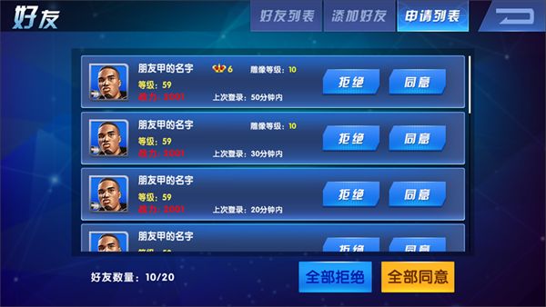 D、收到申请的玩家可以在申请列表中进行操作,决定是否通过对方好友申请: