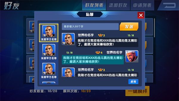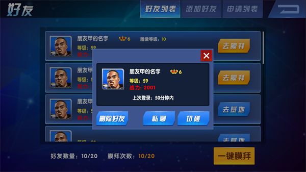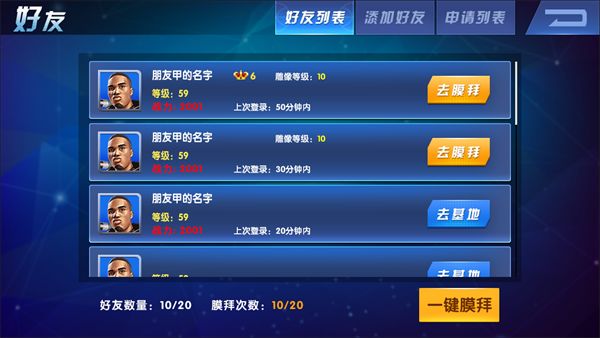 F、已添加的好友可以到彼此的基地中去看看,或者去膜拜对方英雄球员的雕像(见后文基地介绍);