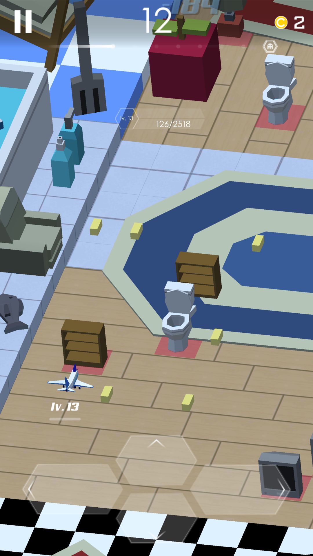 开始游戏后的我震惊了,这游戏是通过虚拟按键操控飞机上下左右是跳着移动的,移动的时候还会有魔性的弹簧音贯耳,一看就不是什么正经飞机啊喂,和外面的妖艳贱货完全不一样啊。