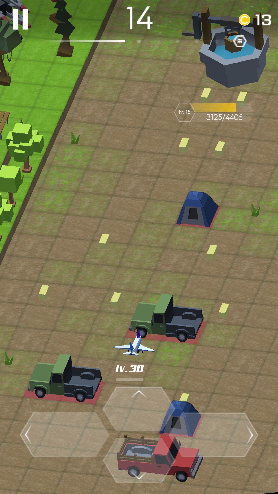 游戏采用了等级模式,在游戏过程中打怪是会升级的,而且不仅如此,等级会一直保持,在游戏中可以收集金币,但是更推荐在game over后选择看个视频,瞬间多了88个金币啊,金币满100可以抽飞机。