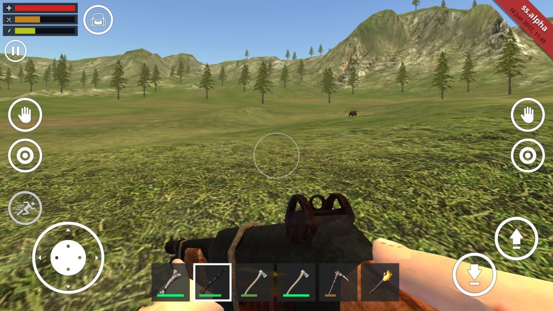 地图只有猪,没别的动物了。bug挺多的,看见猪了让它追你,你一直后退,然后它不追了,这时候你可以随便砍它了,它不会攻击你了