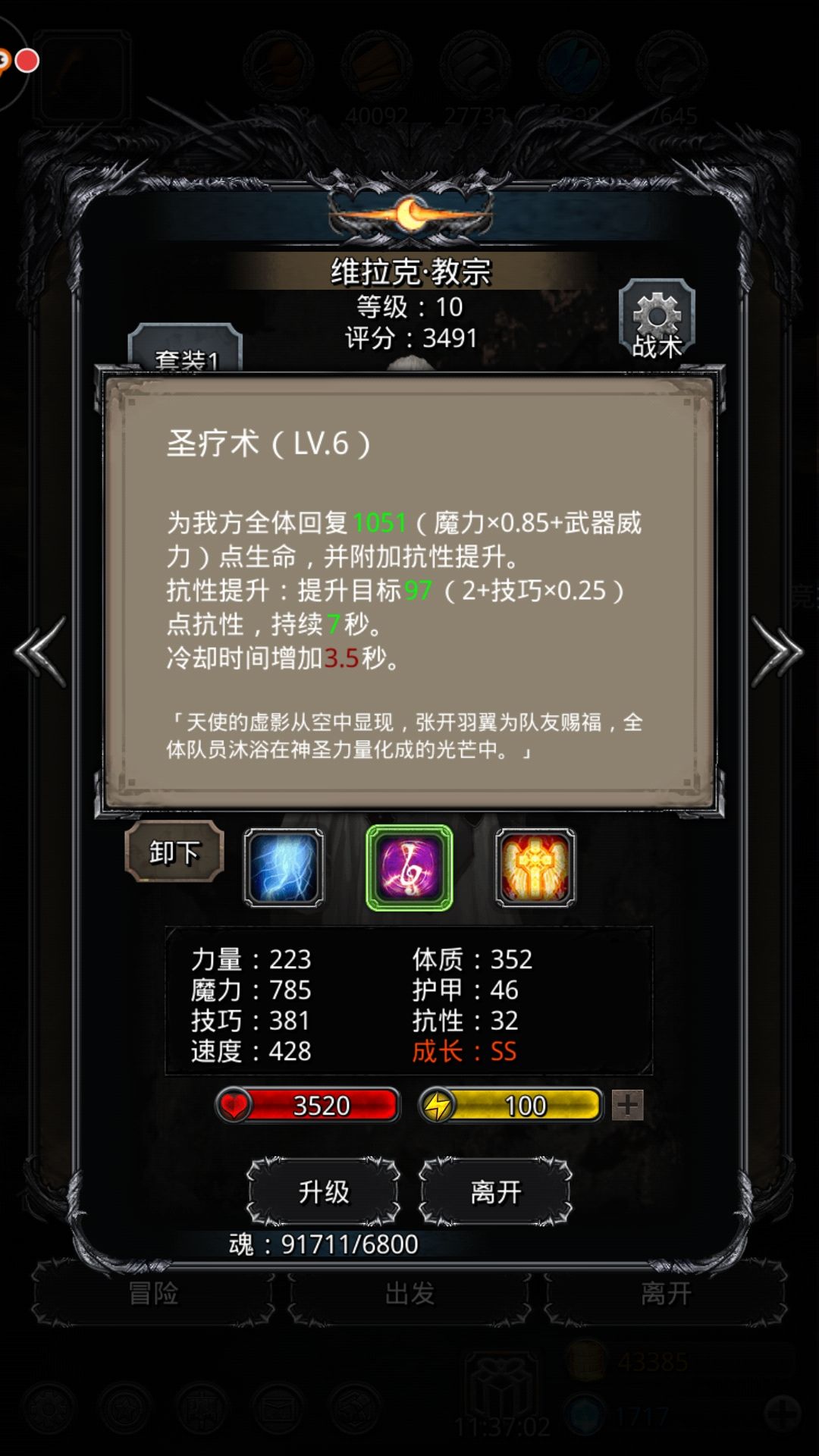 打流血狼的时候:可嘲讽可不嘲讽(嘲讽主要加护甲),神官骑士自己70加血,队友40加血,晕眩不开;法师自己和队友100加血,其他全关;教宗自己和队友100加血其他全关,主力输出。