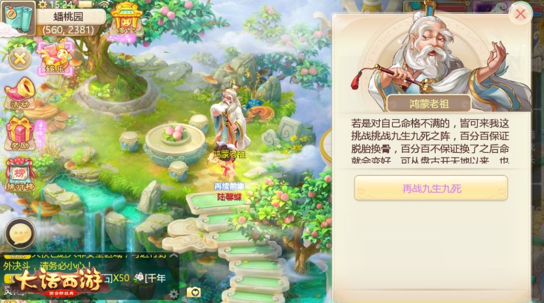 人生到处知何似,应似飞鸿踏雪泥。3月初,大话手游为回归玩家准备的再续前缘系列活动即将即将开启!其中,2019年3月7日12:00:00-2019年3月21日4:59:59,回归玩家专属副本“再战九生九死”限时开启,只要是符合回归玩家定义的大话老朋友们,就能获得专属副本的进入资格,蟠桃园的菩提老祖将迎接老玩家们的归来与挑战。