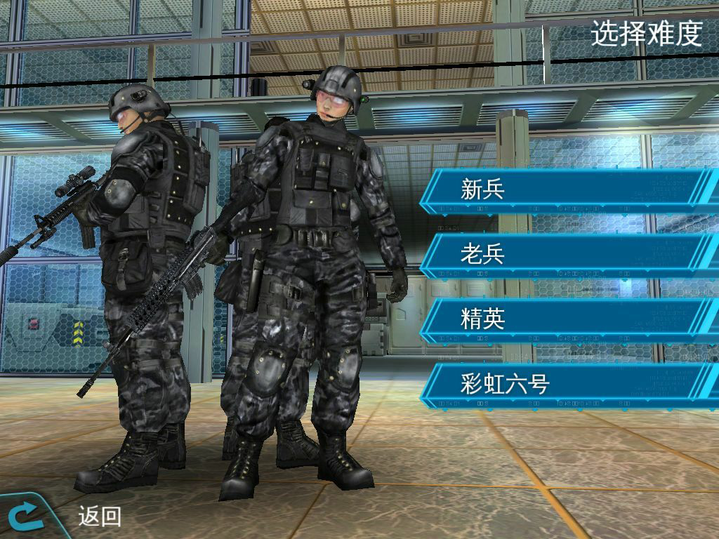 配件组合的设定一直是FPS爱好者喜闻乐见的,彩虹六号却在0几年就搬上了移动设备,不难看出Gameloft的诚意(最近就不好说了,大财团真可怕)