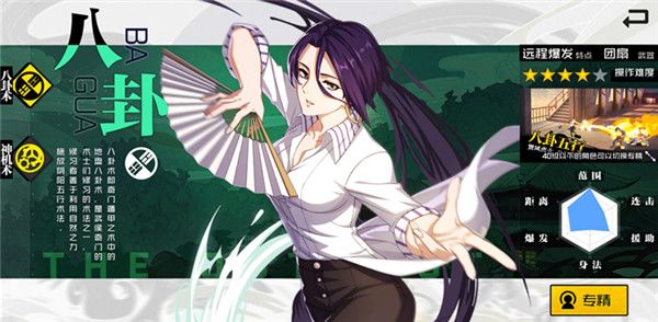 在游戏中八卦术是武侯的专精之一,是一名纯粹的输出专精。该专精通过地盘八卦术来驾驭金木水火土五行元素对敌,战斗时招式华丽同时输出极高,是武侯门派中爆发力十足的一个专精。而且,该专精分支的攻击范围不仅非常的广而且距离很远,个人刷图的能力强劲。