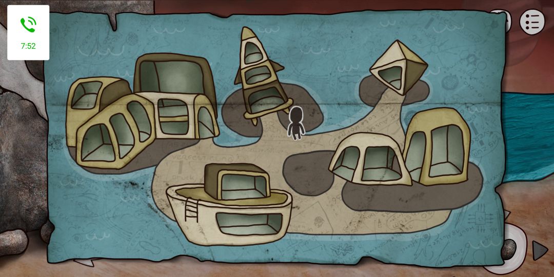 石头投入从左往右第四个洞→种子→回去把种子放到破洞的地方→获得正方形块→再回刚拿种子的地方→墙上放入方形快→到了石洞内房间→开关调节器放到灯上调暗→解锁成就发现壁画→壁画上有地图左边山路上航灯的密码