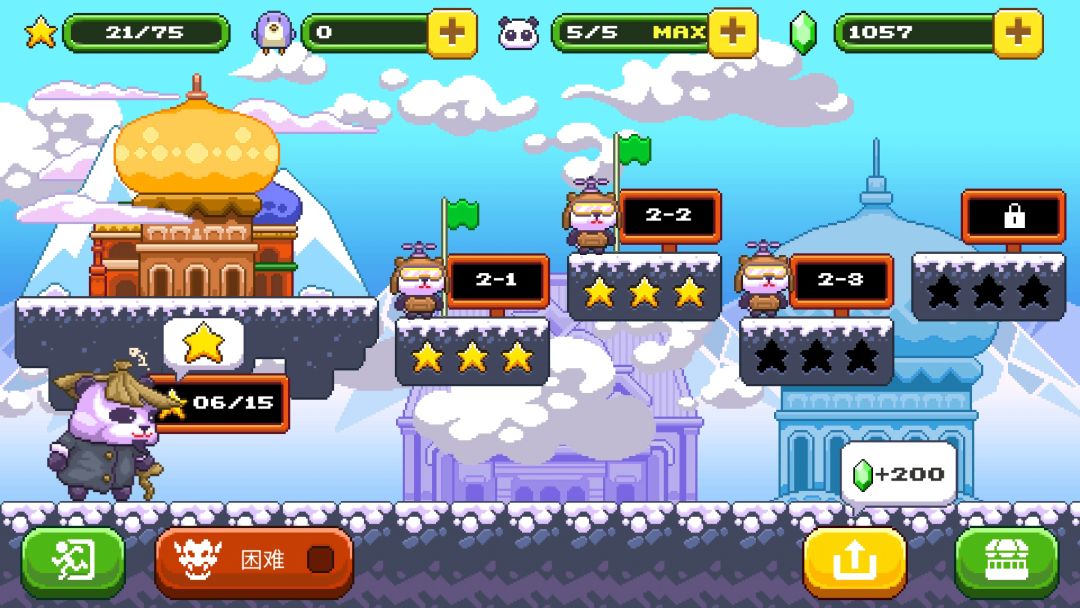 游戏分为两种模式,故事模式便是官方地图,玩家操纵4种能力各异的熊猫:翻滚,观音坐莲,滑翔,盾反。