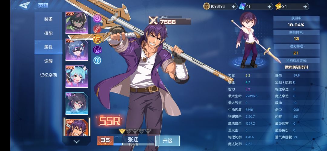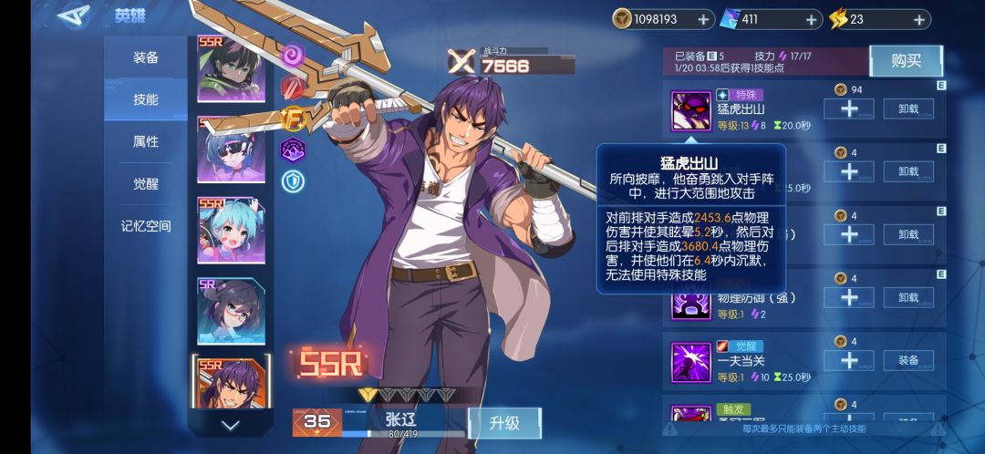 3-张合(r)可提升至(sr)小张辽 这张卡牌控制比张辽略强技能伤害也挺不错,只是基础属性相对于弱些