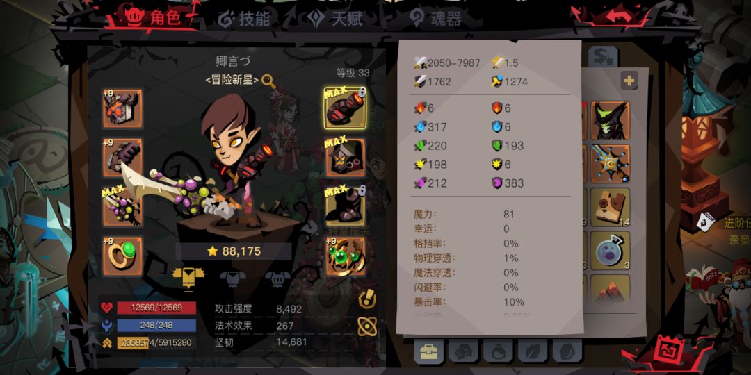 我选择了前期比较简单粗暴的大剑职业,21日回归目前第五天,33级成功通关普通国王,看到论坛里也有一些没有通关的小伙伴,我就想写下这篇攻略,给小伙伴一些思路。我就先抛砖引玉,贴上我此时的面板图及加点。