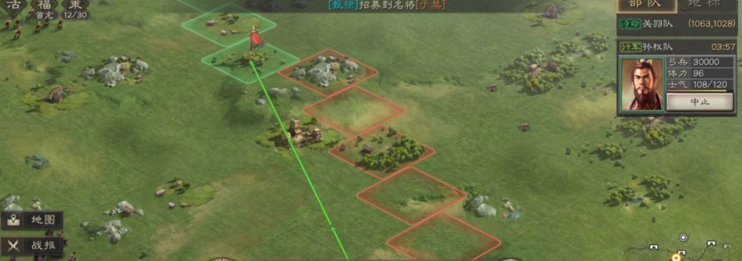 而部队视野即是部队行军停留的地方和战斗过的地方,都会暴露出相邻的2格土地的视野,可以看到附近有没有伏军。