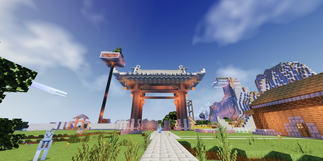 的建筑,红混凝土太难弄了,只好用花岗岩代替