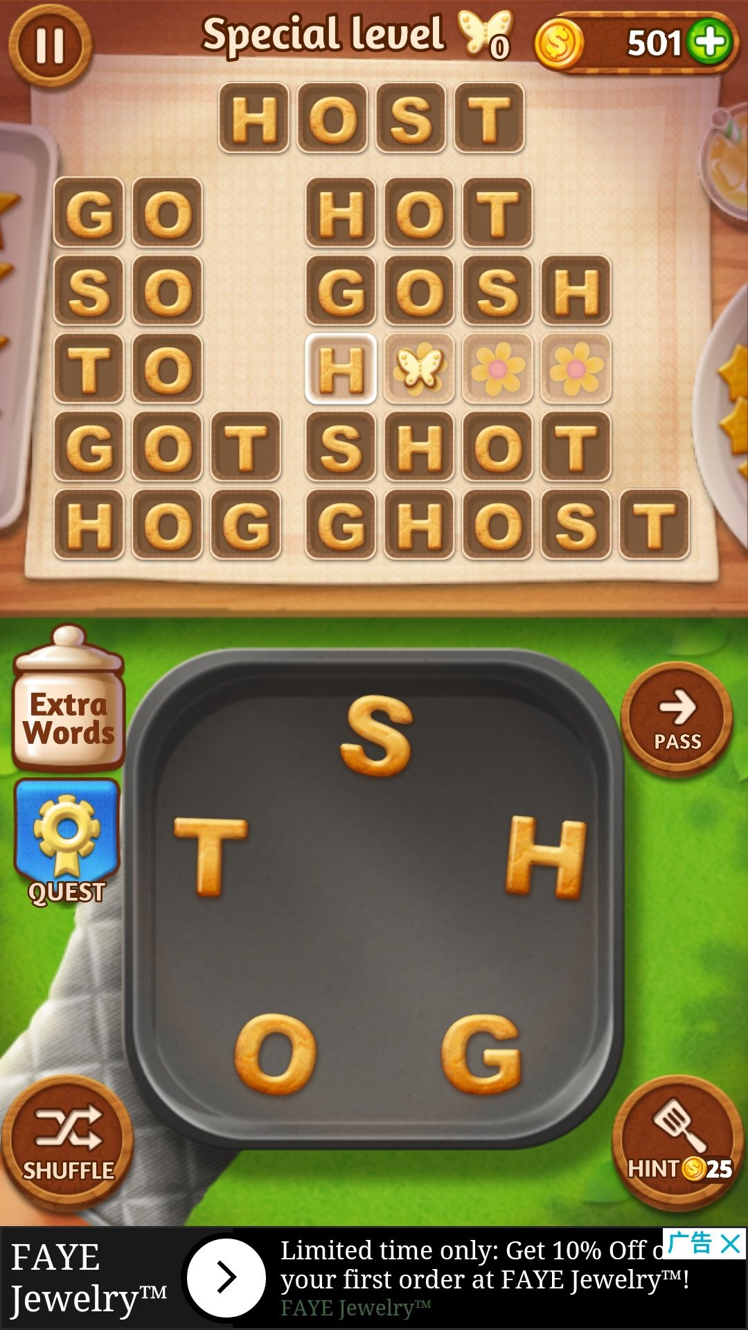 额外单词收集一定数量也有金币奖励,有星星或者蝴蝶的单词也有金币奖励,如果实在是想不出来,还可以使用提示获得未拼出单词的首字母。