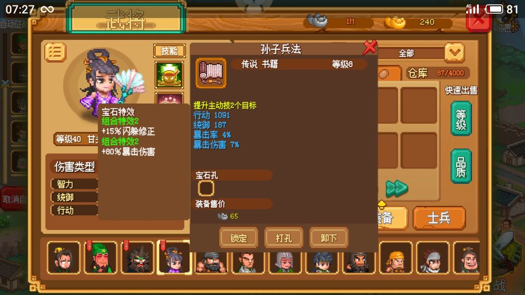 至于宝石:你们看我上面图片,血上限宝石没刷出一套,减伤宝石也没成套,武器防具可以4孔能带2套宝石,兵书我打不了2孔,带啥要看后期,现在有哪套带哪套