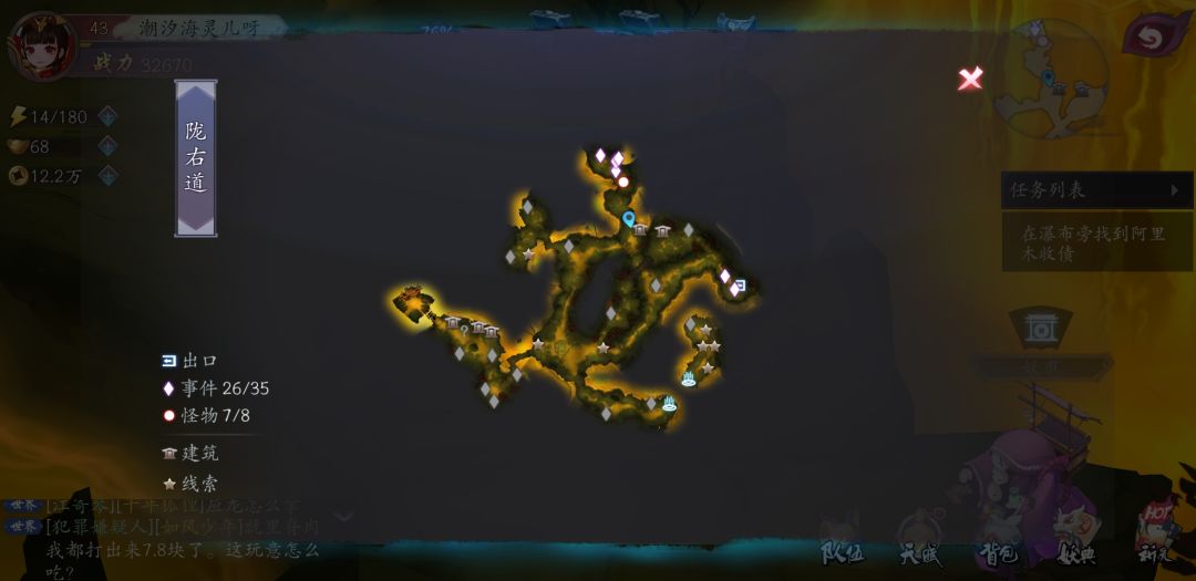 找不到瀑布旁的阿里木哇,右上角的精英打不过,右下角那个人要东西,但是我没有