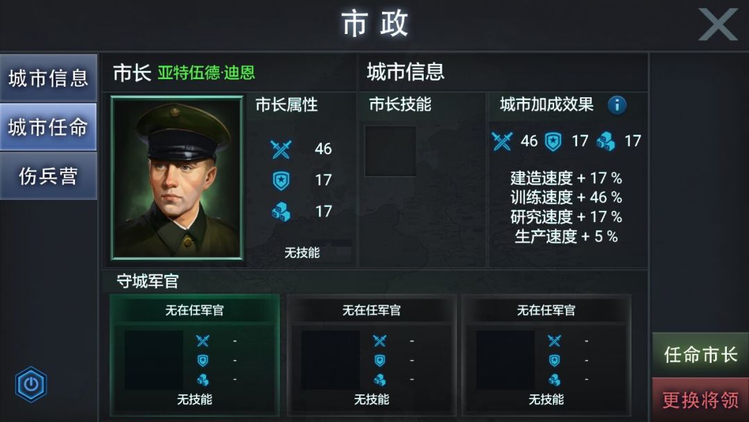 选择军事家为市长,那么本城的军队训练速度会显著提升;