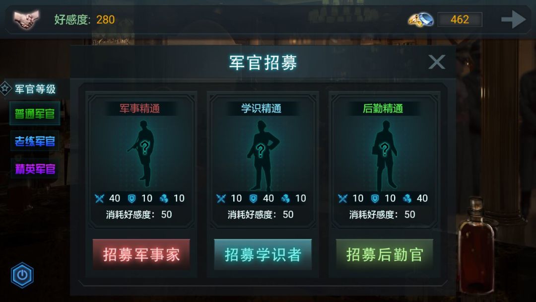 玩家在【酒吧】招募军官时会发现军官分为以下几种: