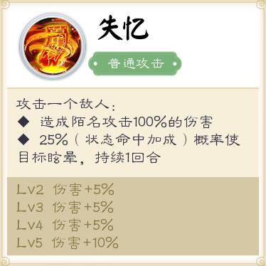攻击一个敌人,造成陌名攻击100%的伤害,且有25%概率(状态命中加成)使目标眩晕,持续1回合。