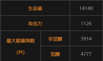 数值基于4星、等阶 5、50 级、觉醒等级 99